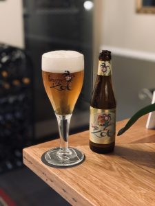 Unfiltered, dry and hoppy beer, revived after abbey demolition in 1797 during the French revolution
